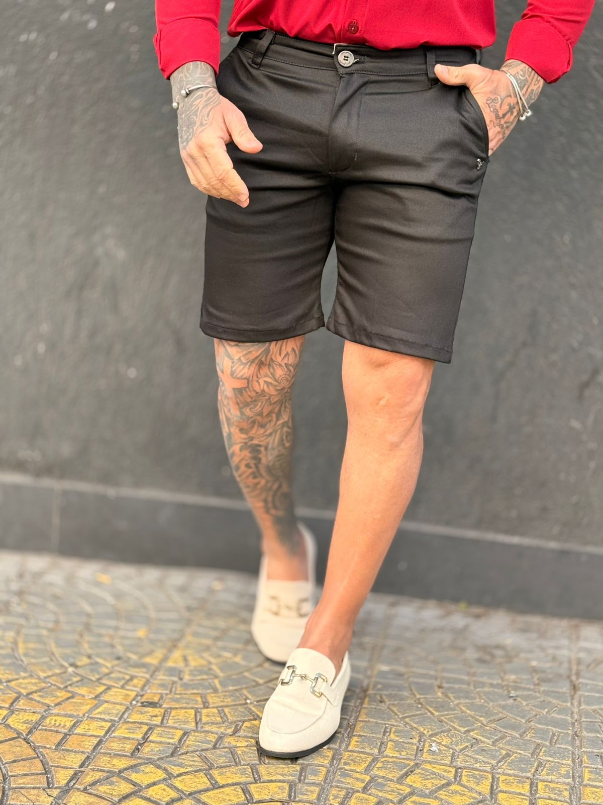 Bermuda Alfaiataria em Tecido Acetinado Extreme Power Stretch - Conforto e Flexibilidade sem Igual Descrição: Apresentamos a bermuda Alfaiataria em Tecido Acetinado Extreme Power da Per Pochi, uma peça que redefine o conceito de elegância e conforto. Confeccionada com tecido de alta tecnologia, esta bermuda oferece um nível de flexibilidade e conforto inigualável