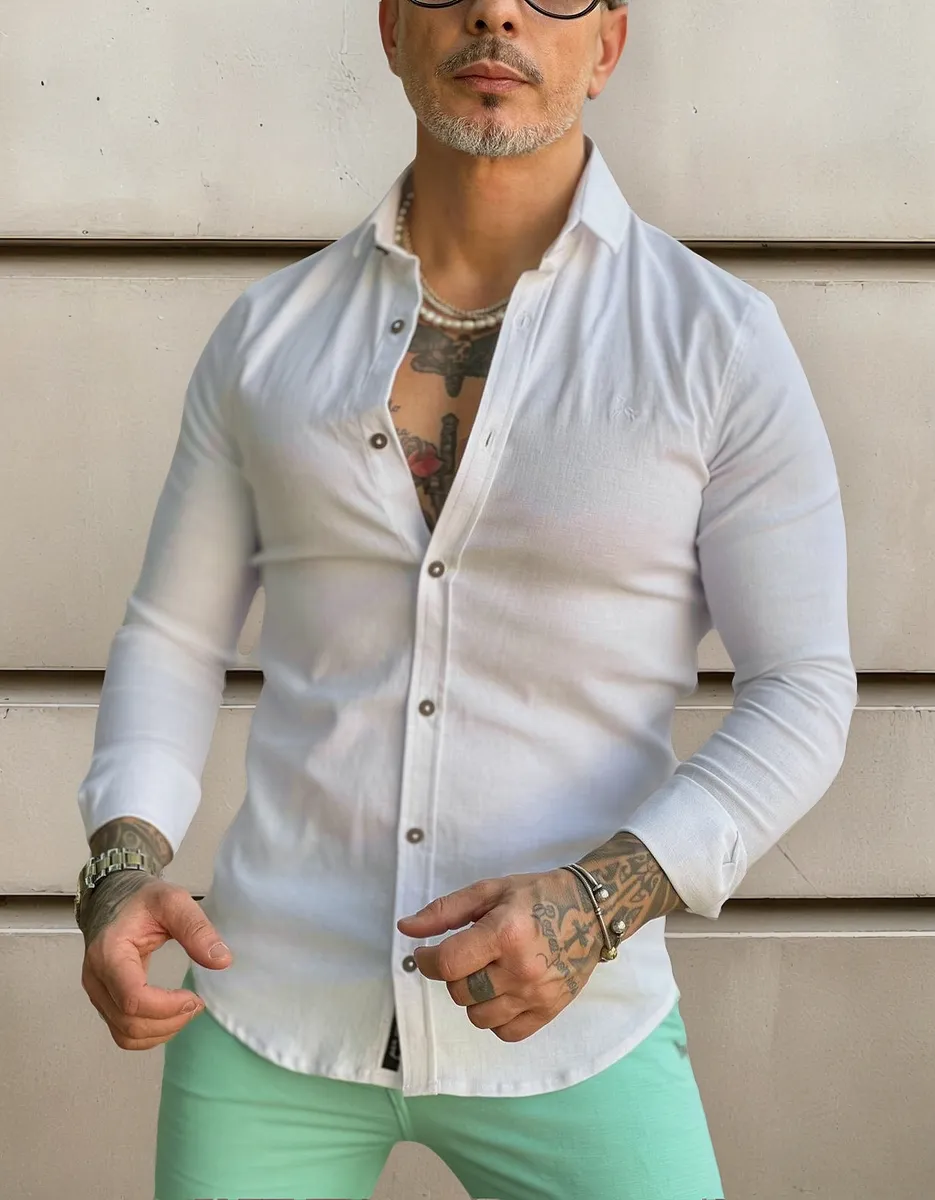 Camisa Masculina Linho Gola Italiana Per Pochi Branca