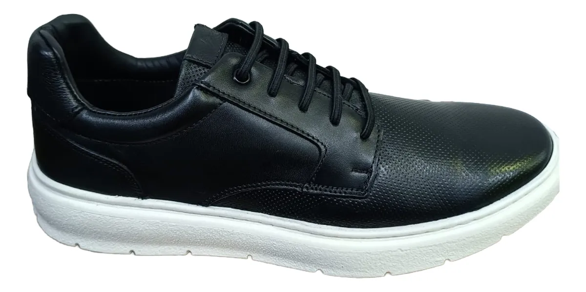 Tenis Masculino Casual Whisky 100% Couro Sapatenis Preto